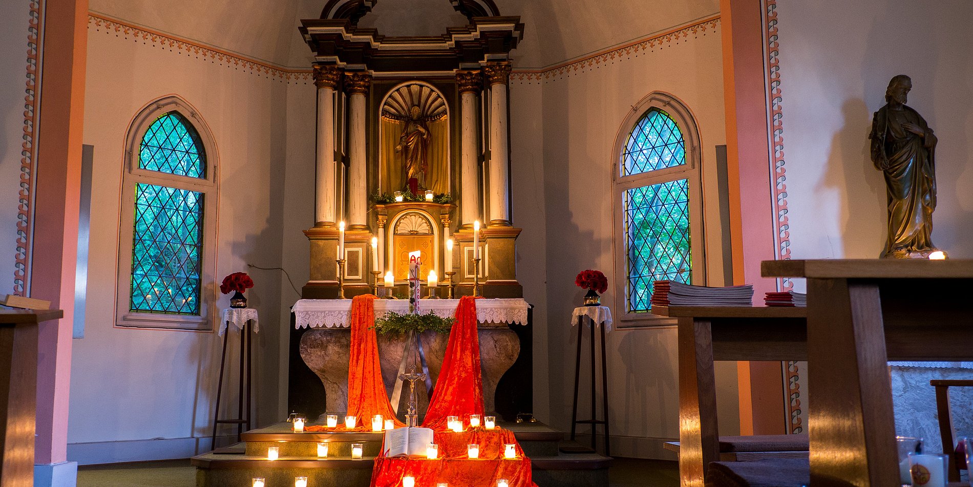 Zu gegebenen Anlässen findet hier ein Gottesdienst statt. Die Termine finden Sie im Kalender.